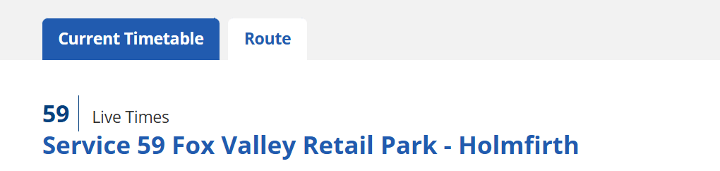 Elsewhere on the WYCA website is a search facility for bus timetables – sadly, this is no help either as the search only comes up with the other Service 59 bus route in the area – twenty miles away in Holmfirth.