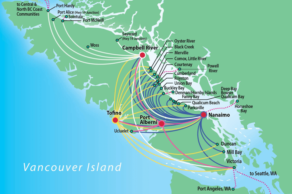 Corilair flies into Cambell River from the Seair terminal at Richmond (YVR) between late June and early September