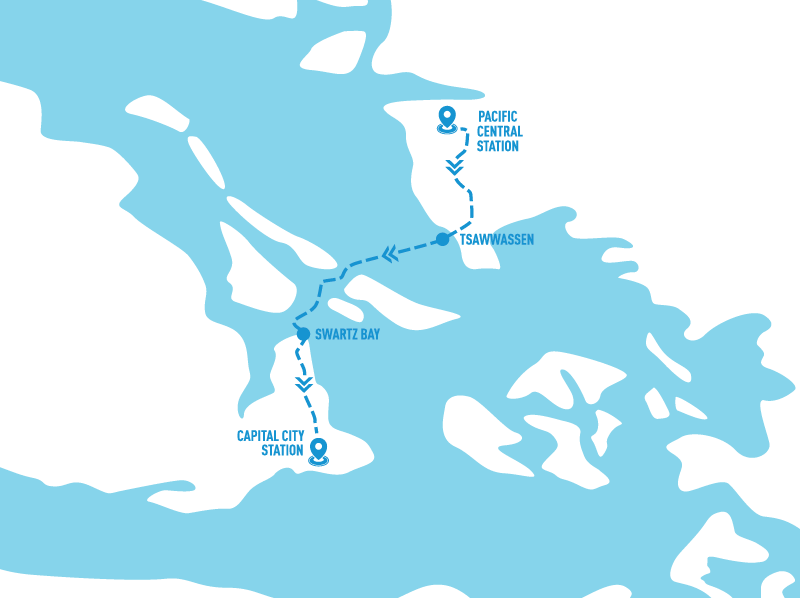 For passengers arriving in Vancouver without a car, the BC Ferries Connector offers a through express bus from downtown Vancouver, Vancouver Hotels and Vancouver Airport to Victoria, via the Tsawwassen-Swartz Bay ferry.